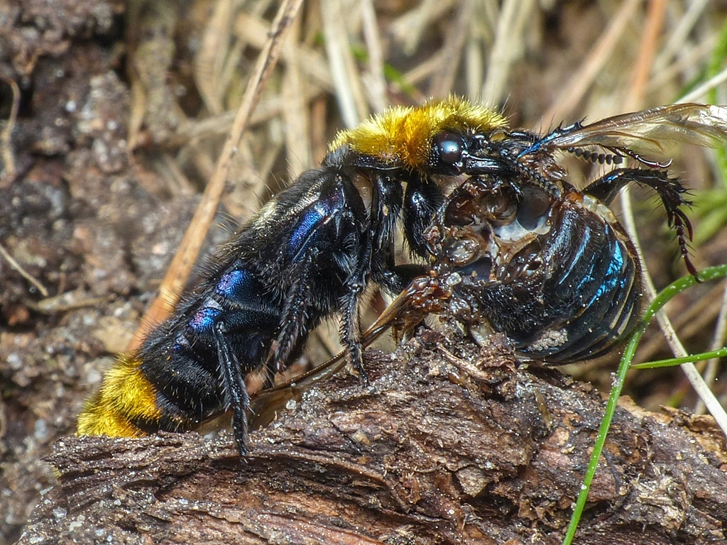 30.05.2021 Osobnik żerujący na szczątkach żuka Anoplotrupes sp. przy świeżym pniaku dębowym który zwabiał do wysączającego się soku dziesiątki żuków Fot. Marek W.Kozłowski